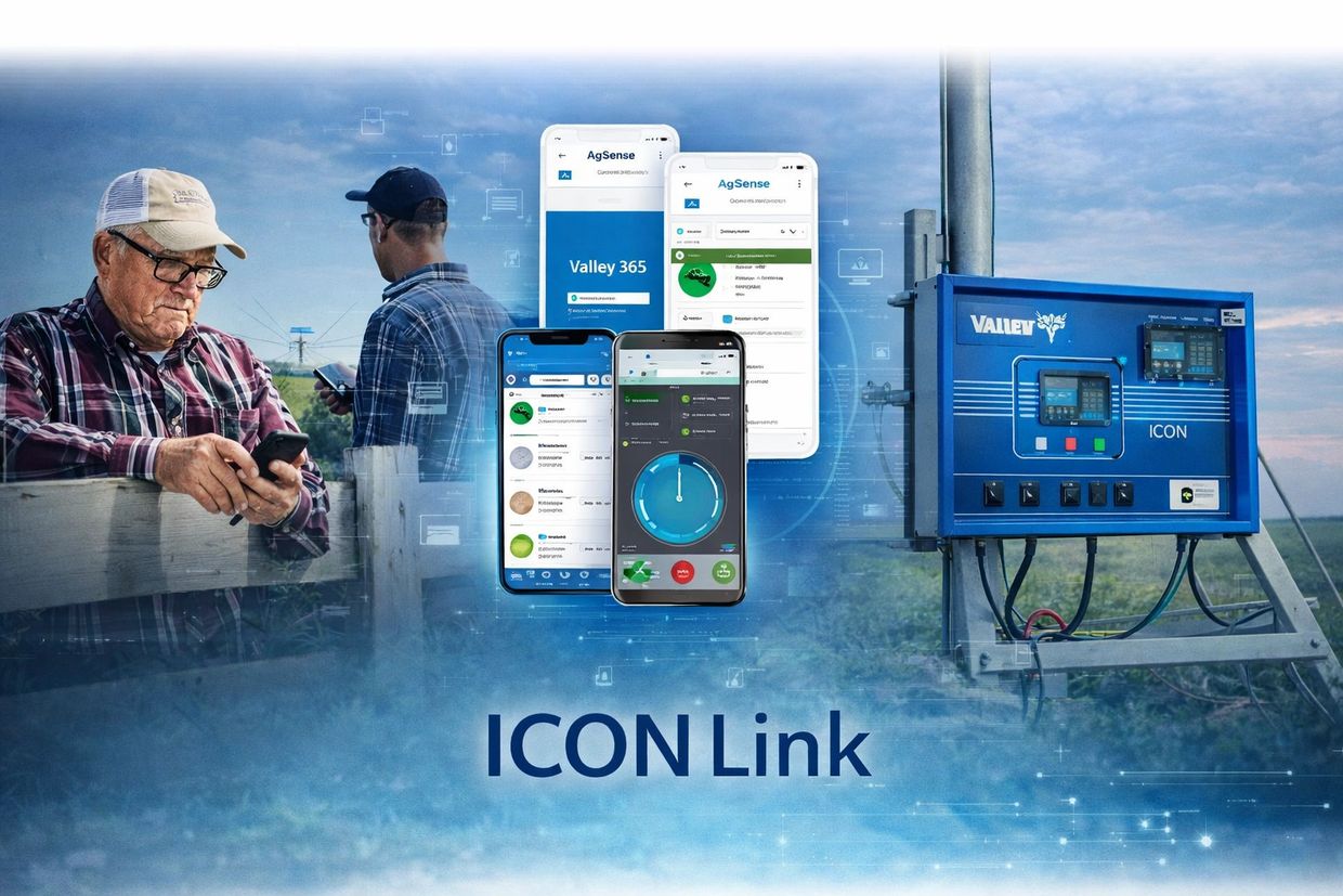 Remote irrigation management reaches a new level with ICON Link, built directly into Valley ICON smart panels from Valley Irrigation. Designed to connect your pivot to your mobile device, ICON Link delivers fast, reliable monitoring and control from anywhere in the world through the AgSense 365 platform. With real-time access to your irrigation systems, growers gain full visibility and command over water application, machine performance, and field conditions at industry-leading speeds.