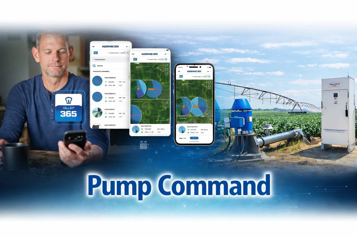 At K&T Irrigation, we are proud to provide Valley® Pump Command integrated with the AgSense® 365 irrigation management platform, giving growers a powerful and reliable way to monitor and control irrigation pump systems remotely. Pump Command transforms traditional pump stations into intelligent irrigation infrastructure by allowing operators to start, stop, and manage pump performance from anywhere while automatically adjusting output to match pivot demand. By integrating pump control directly with your center pivot irrigation network, the system helps optimize water delivery, improve energy efficiency, and protect valuable pumping equipment while eliminating unnecessary trips to remote pump sites. Whether managing a single irrigation pump or coordinating multiple pumps and pivots across an operation, Pump Command provides the visibility, automation, and control today’s growers need to run modern irrigation systems with confidence—while K&T Irrigation delivers the expertise to design, install, and support these advanced water management solutions in the field.
