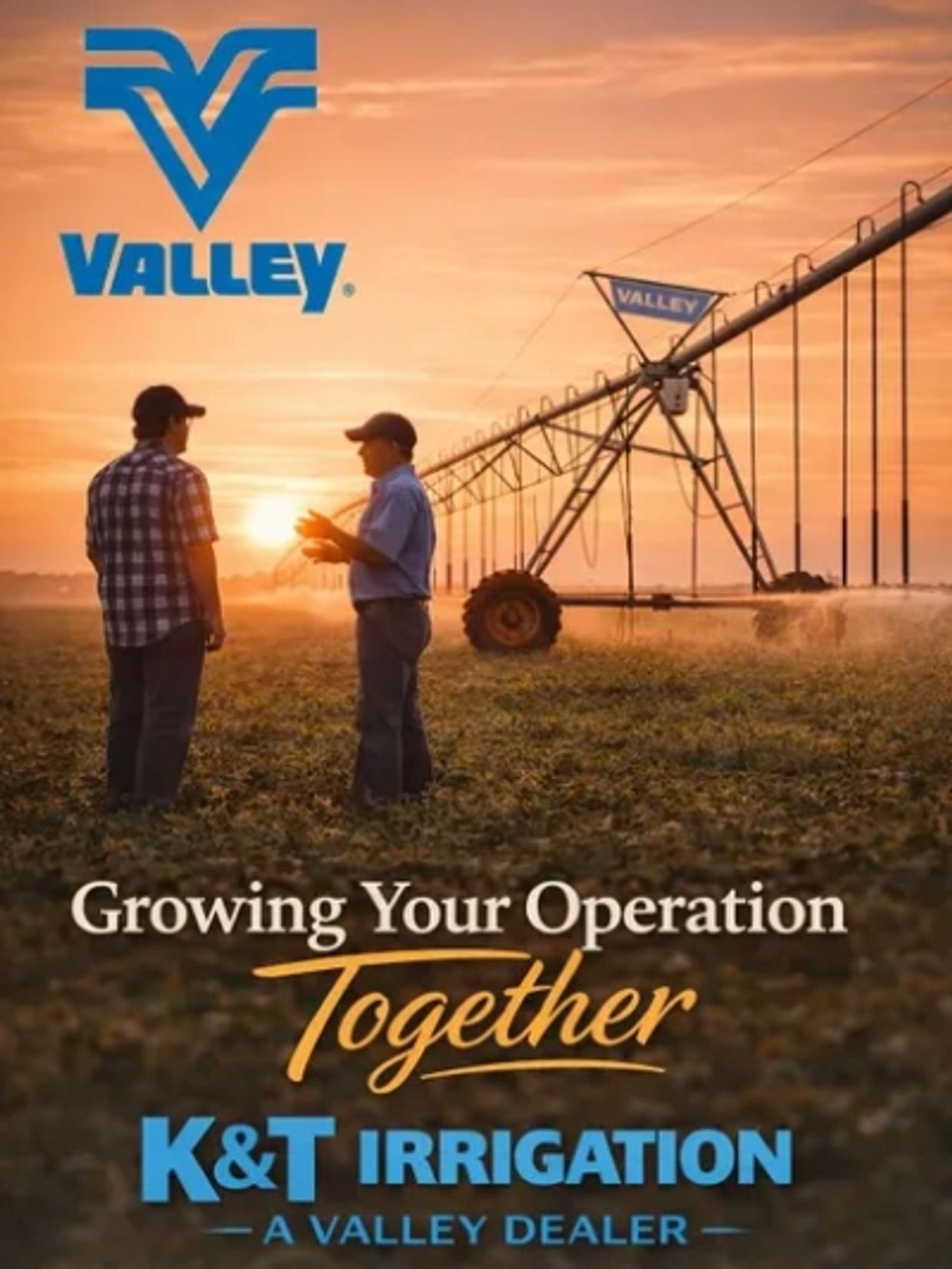 At K&T Irrigation, we work directly with growers to design and implement complete agricultural irrigation solutions that support both current crop production and long-term farm expansion. Our team helps producers evaluate water sources, pumping capacity, system pressure requirements, and field distribution to develop practical water management strategies for modern farming operations. As a trusted Valley® irrigation dealer, we combine industry-leading Valley center pivot irrigation technology with real-world experience in irrigation system design, pump stations, phase converters, and agricultural water delivery systems to build irrigation infrastructure that performs reliably in demanding farm environments.